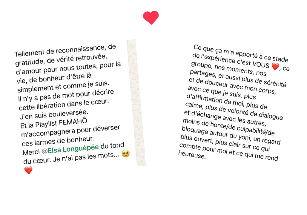 Rejoins d'autres femmes qui ont fait l'expérience entière de FEMAHO avant toi..