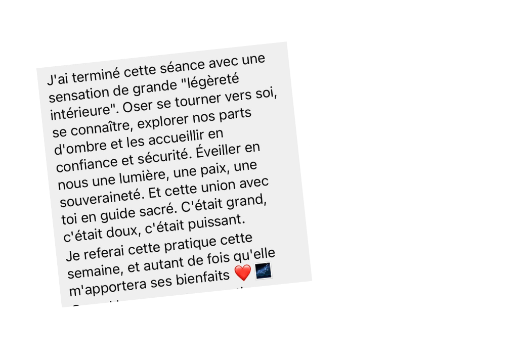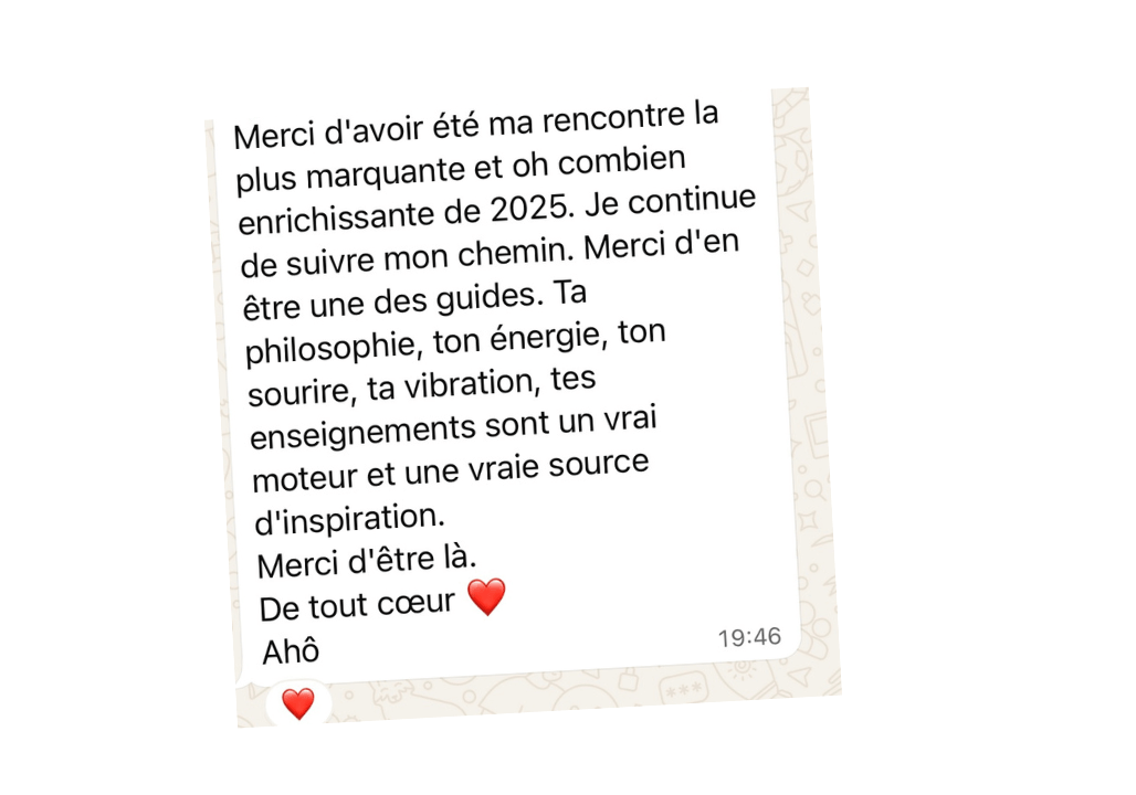 Ce n’est pas une transformation forcée. C’est un retour. Tu te sens : plus présente, plus consciente, plus vivante. Tu respires différemment. Tu te sens chez toi dans ton corps.